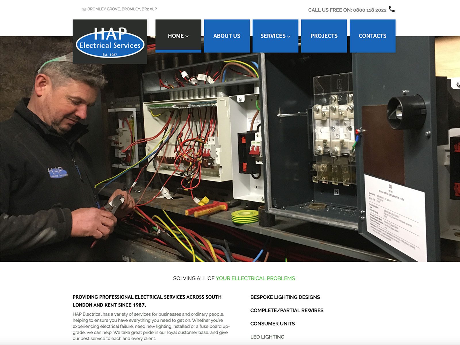 HAP Electrical Services What we did: Content Management System Custom web design Web and e-mail hosting Mobile Website Administration Panel Website Maintenance Visit Site